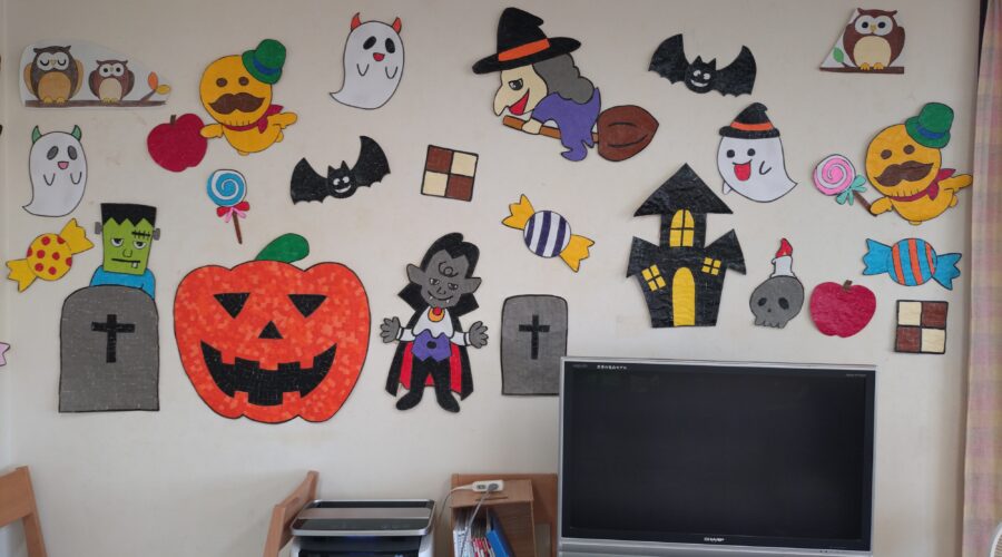 デイサービス貝塚駅前をご利用のお客様が制作された作品を飾り付けしました。朝晩は少し過ごしやすくなってきましたね。いつもありがとうございます。