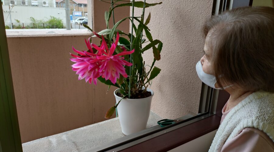 デイサービス貝塚駅前で育てているサボテンの花が、ついに咲きました。お客様が待ち望んでおられましたので、大変喜ばれておりました。